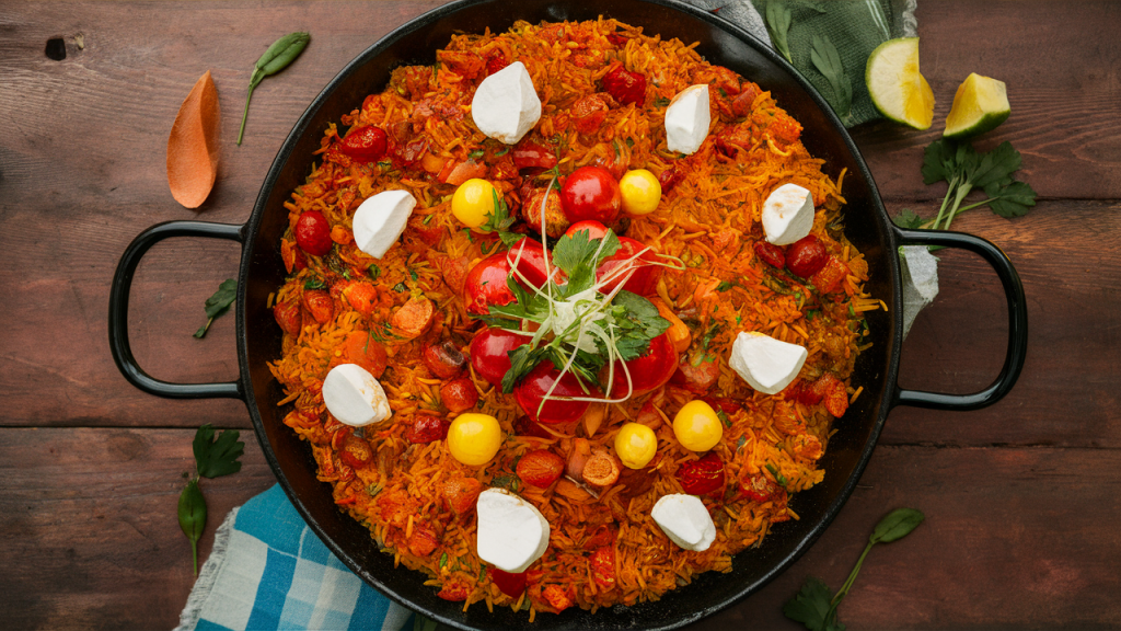 Hierdie kulinêre meesterstuk, liefdevol vervaardig deur Maria, ware Valenciaanse matriarg, is bewys van die ryk kulturele erfenis en die onwrikbare toewyding om die geure van die verlede te bewaar. Stap in die kombuis van Maria, en jy sal vervoer word na wêreld waar die aroma van saffraan, gerookte paprika en perfek gekookte rysdans rondom jou is, wat simfonie van smaak skep wat jou sintuie sal boei.